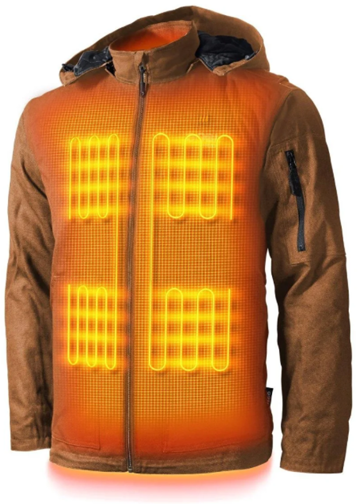 Grit is the ultimate companion for tough jobs in cold weather. Crafted from durable duck cotton, this men's 5 zone heated workwear jacket ensures you stay warm and comfortable all day long. Powered by the industry-leading Gobi Heat 6500 mAh 7.4V battery, enjoy up to 9 hours of uninterrupted heat, allowing you to focus on the task at hand without worrying about the chill.Designed for functionality and durability, Grit features cozy knit cuffs, gusseted armpits, and a drop-tail hem for enhanced coverage and freedom of movement. Whether you're braving the elements on a construction site or tackling outdoor projects, this jacket has you covered. Versatility meets style with Grit's detachable hood and heavy-duty metal zippers, providing added convenience and durability. Available in Onyx and Camel, Grit is more than just a workwear jacket - it's a statement of rugged style and reliability.