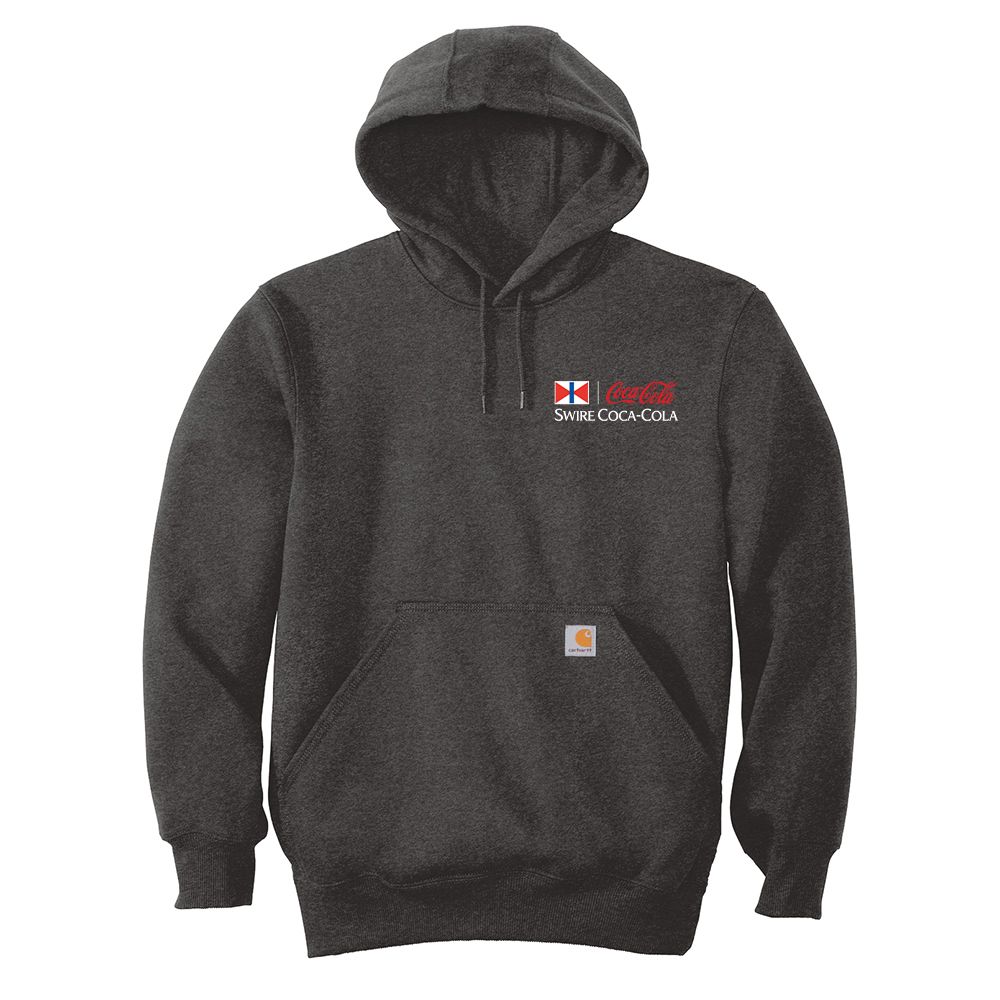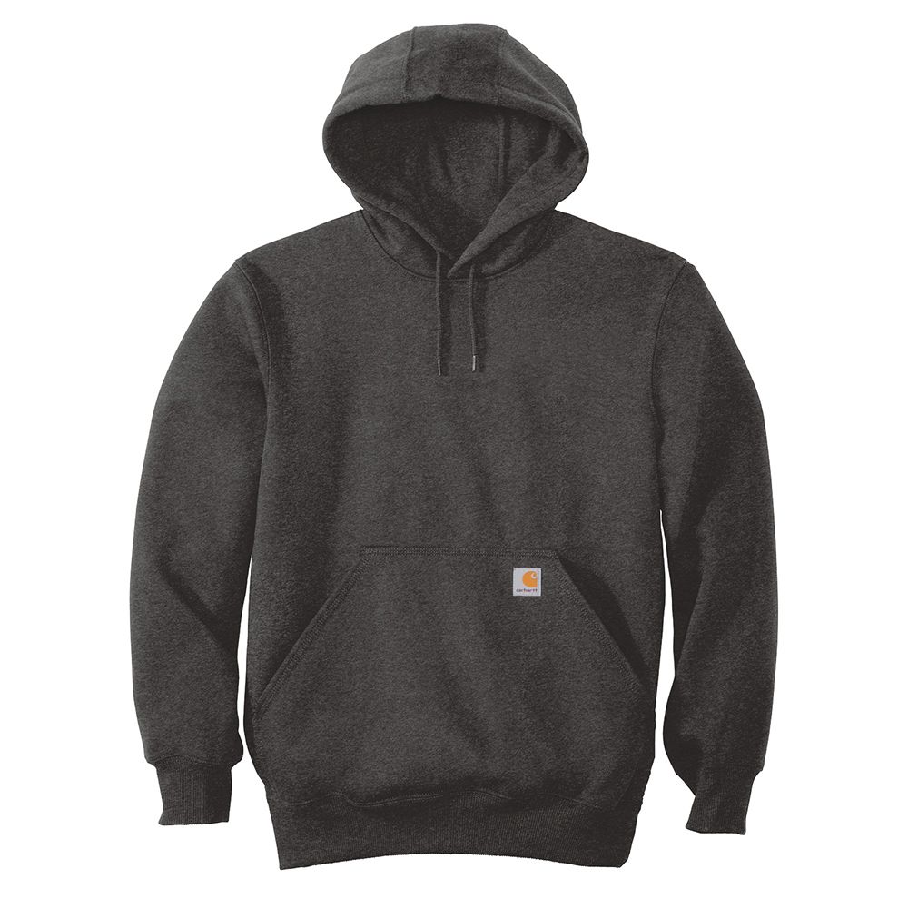 • A heavyweight version of the classic hooded sweatshirt, this heavy-duty hoodie stands up to outdoor work in a substantial, water-repellent cotton blend. • 13-ounce, 75/25 cotton/poly blend or 55/45 cotton/poly blend with Rain Defender durable water-repellent finish (Black, New Navy)* • 55/45 cotton/poly blend (Carbon Heather) • Attached jersey-lined three-piece hood with drawcord closure • Front hand warmer pocket with hidden security pocket inside • Stretchable, spandex-reinforced, rib knit cuffs and waistband • Carhartt label sewn on hand warmer pocket • Loose fit • *Please note: Select colors in Carhartt fleece are currently transitioning from a 75/25 cotton/poly blend to a 55/45 cotton/poly blend. Weight and fabric properties remain the same. Your order may contain a combination of both fabrics.