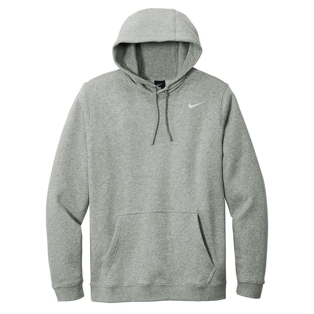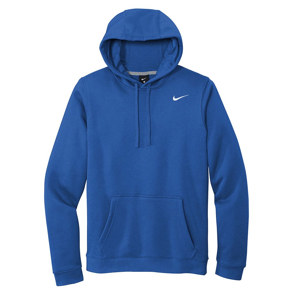• A closet staple, this hoodie combines classic Nike style with the soft comfort of brushed-back fleece • A jersey-lined, 3-panel hood with dyed-to-match drawstrings offers adjustable coverage • Rib knit cuffs and hem • Front pouch pocket • A contrast Swoosh design trademark is embroidered on left chest • Made of 8.2-ounce, 80/20 cotton/polyester with a 100% cotton hood lining.