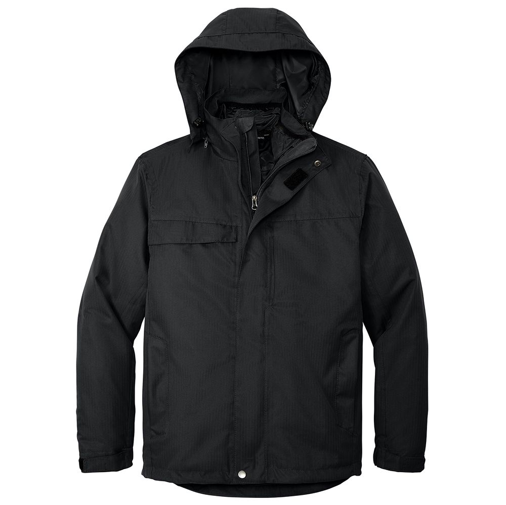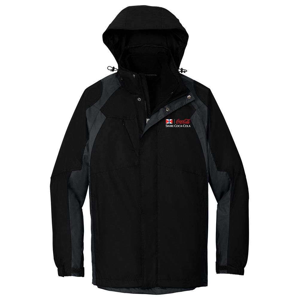 This jacket offers three great layers for one great price. The plush microfleece jacket is perfect on cool days; the critically seam-sealed waterproof shell on rainy days; or combine the two for more protection. 100% polyester shell with PU coating 100% polyester lining 3000MM fabric waterproof rating Critically seam-sealed for added waterproof protection 3000G/M2 fabric breathability rating Detachable hood with adjustable self-fabric tab drawcord and toggles Interior storm flap with hook and loop closures and chin guard Two-way zipper Front zippered pockets Half elastic half self-fabric adjustable tab cuffs with hook and loop closures Port Pocket for easy embroidery access 100% polyester microfleece inner jacket has an anti-pill finish and open cuffs with spandex binding Open hem with drawcord and toggles