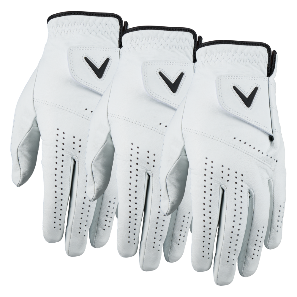 The Callaway Dawn Patrol Golf Glove delivers exceptional performance in a full leather glove that combines exceptional feel, outstanding grip, and optimal durability. Left Hand glove, size Medium. Set of 3