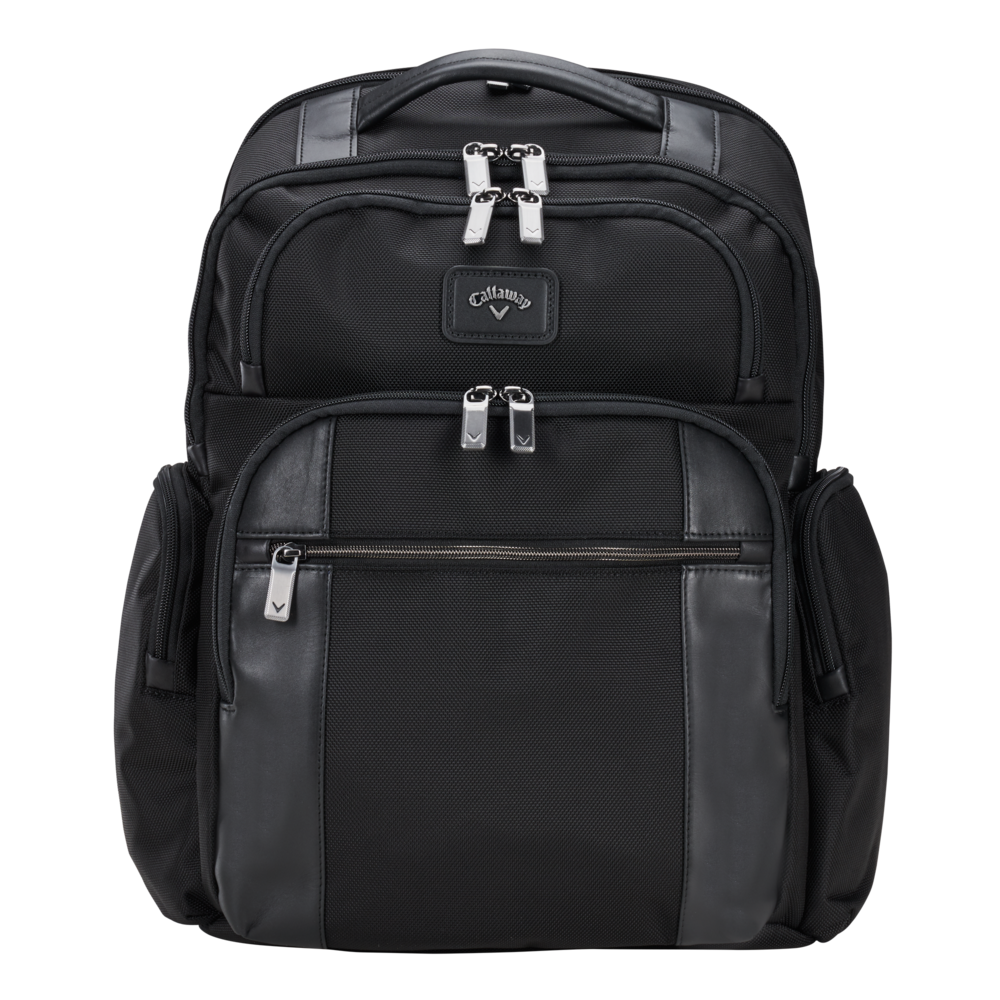 From daily use to jet setting, the premium and durable Tour Authentic Backpack blends style and sophistication in a package worthy of the Callaway name. It features a ballistic nylon construction, leather handles, a telescoping handle pass through, and padded shoulder straps. Color: Black