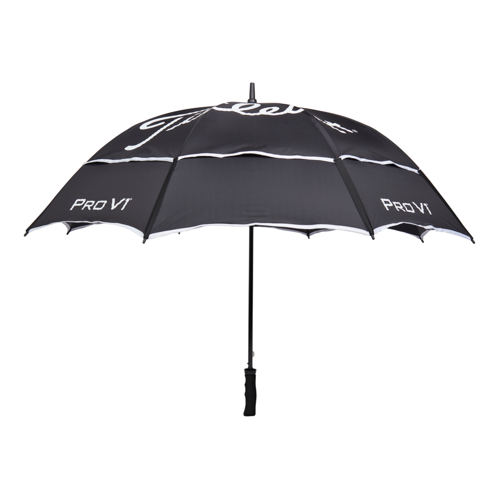 The durable Tour Double Canopy Umbrella provides 68 inches of coverage from rain and sun, delivering needed protection out on the golf course.